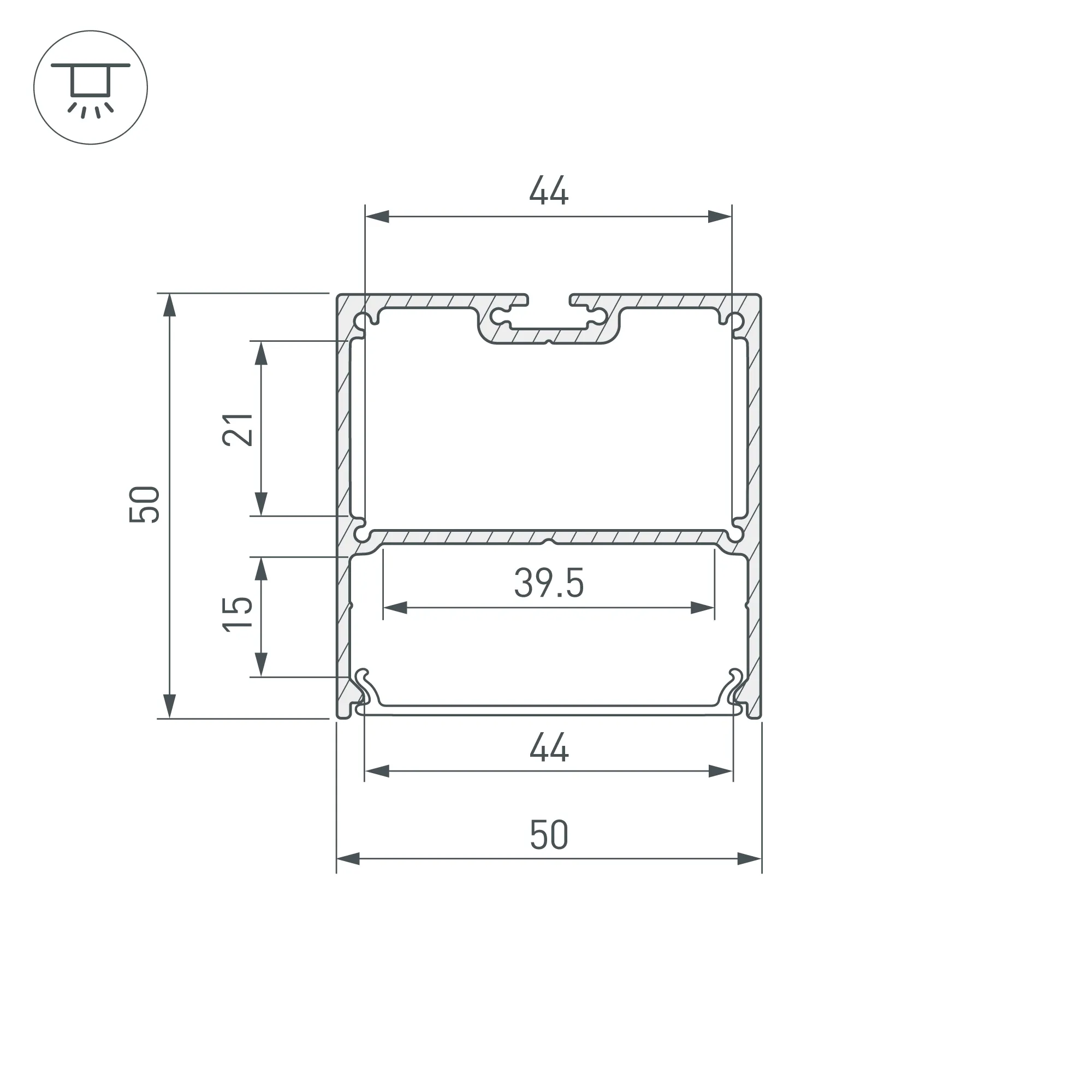 Алюминиевый анодированный профиль для светодиодных лент и линеек. Цвет - черный. Габаритные размеры (L×W×H): 3000x50x50 мм. Ширина площадки для ленты 39,5 мм. Отсек для БП 44х21 мм. Экраны, заглушки и другие аксессуары приобретаются отдельно. Цена за 1 метр.