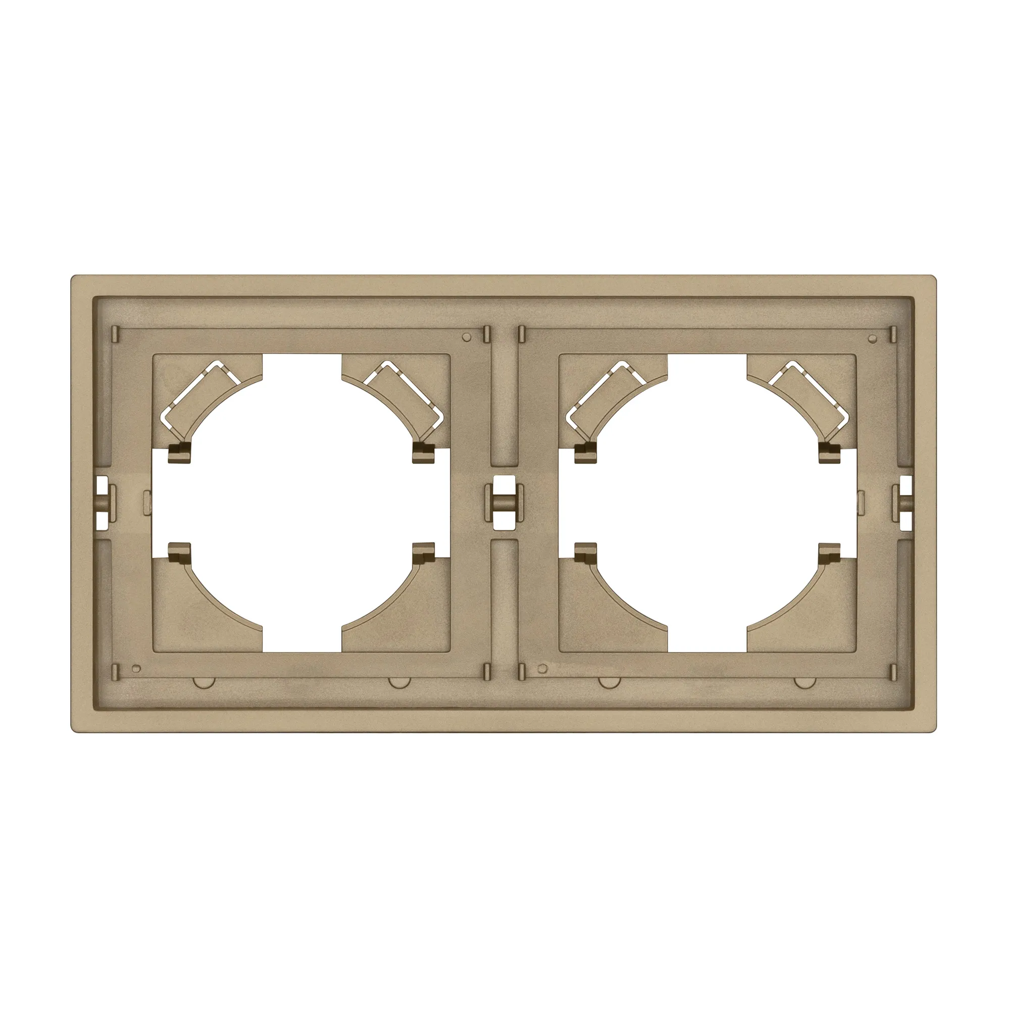 Рамка пластиковая на 2 поста, под встраиваемый механизм. Цвет - матовый песочный, с Soft-Touch покрытием. Уровень герметичности IP20. Ориентация монтажа горизонтальная.